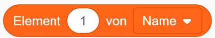 Nutzen Sie eine „wiederhole bis“-Schleife in Kombination mit der Variable, sodass in jedem Schleifendurchlauf das aktuelle Element der Liste „Name“, beginnend mit dem ersten Eintrag (Index 1), für eine Sekunde ausgegeben wird.