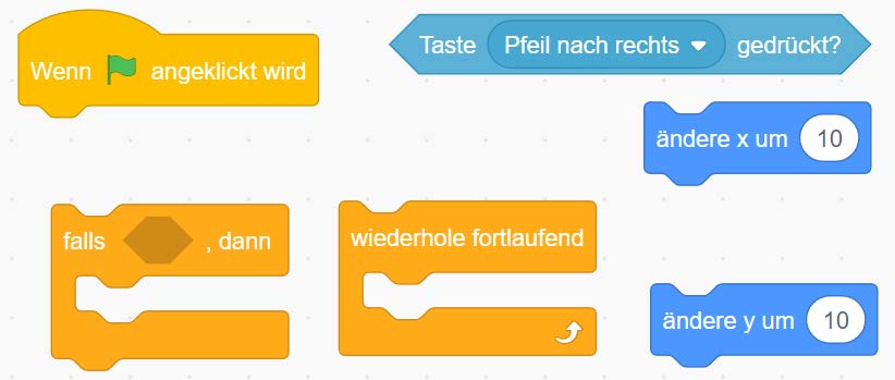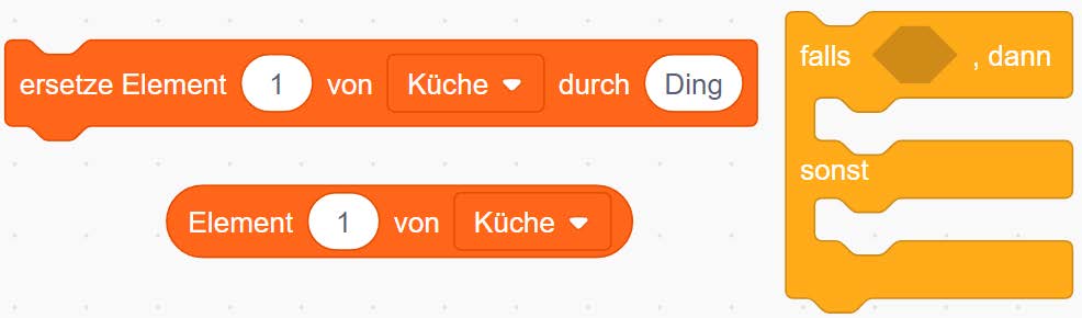 Hinweis: Die abgerundeten Blöcke kannst du z. B. für eine Ausgabe verwenden und der unterste Block ist eine Bedingung.