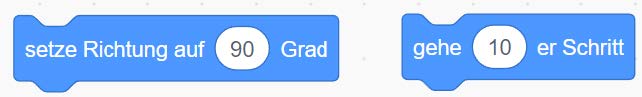 Setze deine Lösung aus c) mit Hilfe der folgenden Blöcke, anstelle der „ändere x bzw. y um…“-Blöcke um: