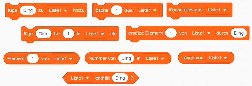 Erstelle in einer neuen Datei eine Variable vom Datentyp Liste und probiere mit die verschiedenen Blöcke für deine Liste aus, indem du einfach verschiedene Zahlen in deiner Liste speicherst.