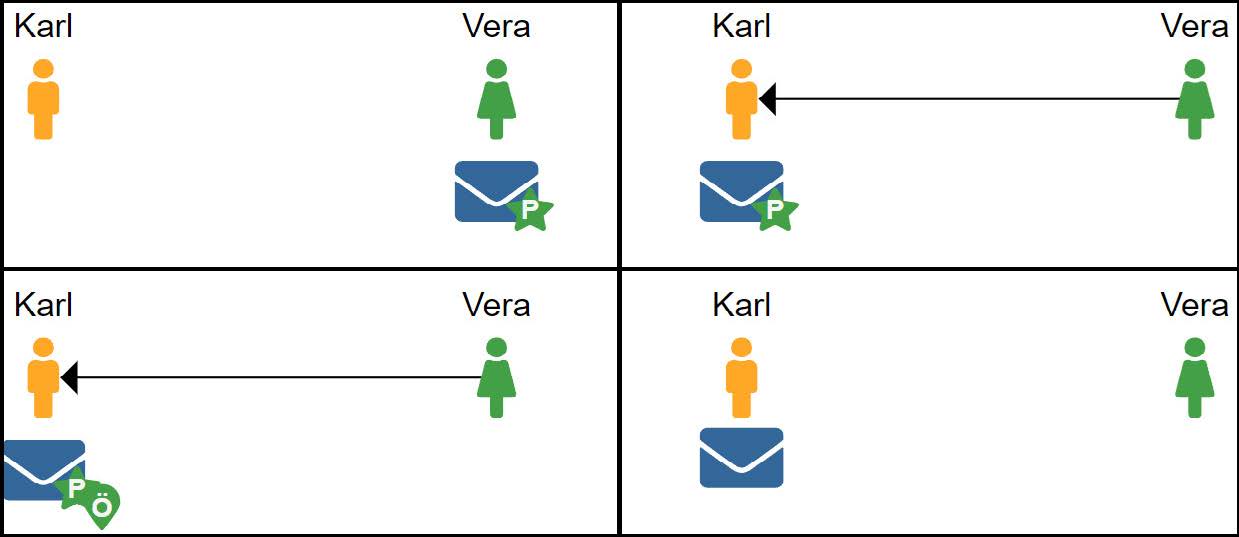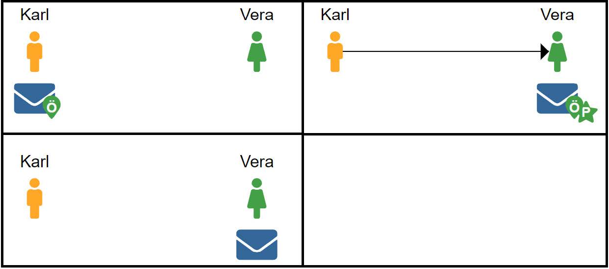 Beschreiben Sie den Ablauf, wenn Vera an Karl die Klartextnachricht 4 schicken möchte.