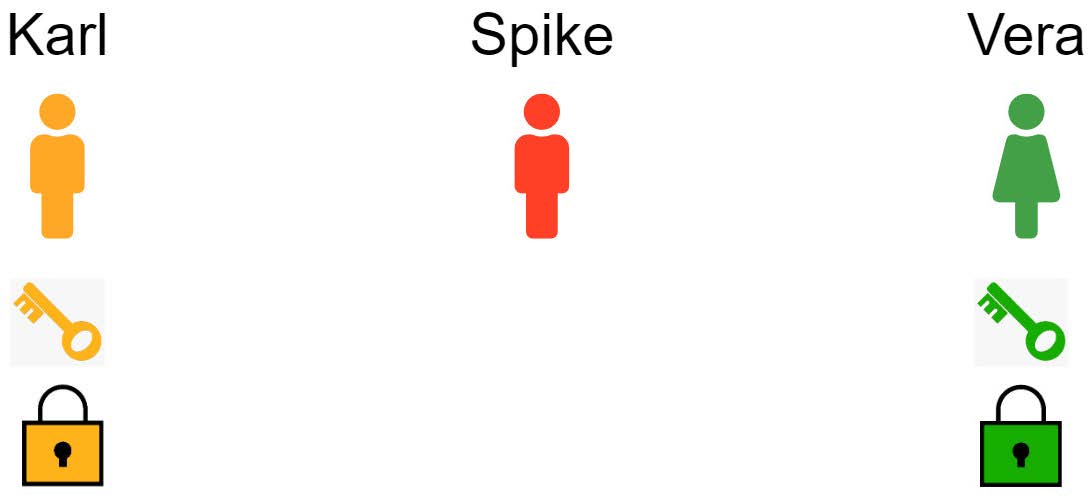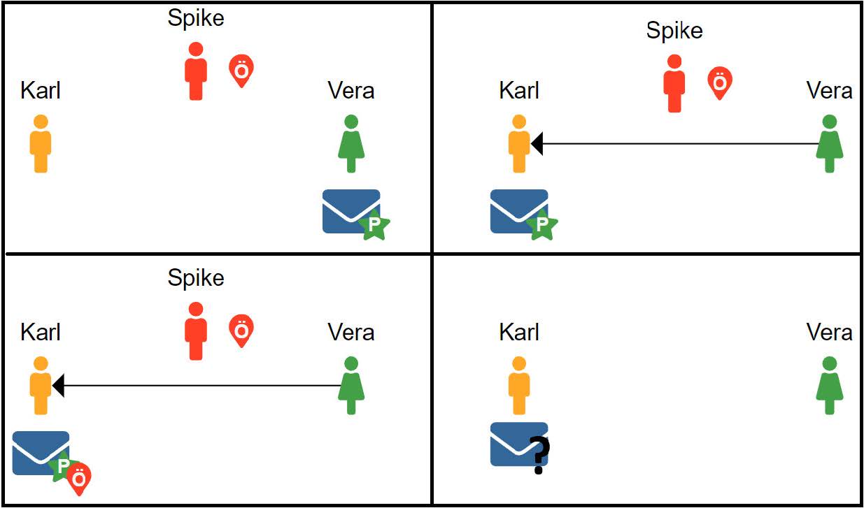Untersuchen Sie, welche Möglichkeiten sich für Spike jetzt ergeben, wenn er die gesamte Kommunikation zwischen Karl und Vera abfangen kann.