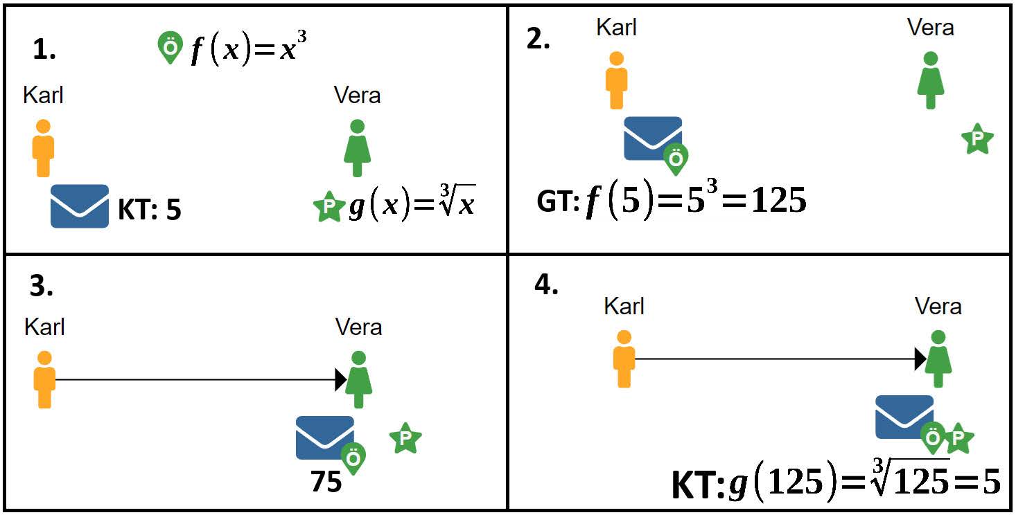 Veras öffentlicher Schlüssel, also das bisherige Schloss, ist dann die Funktion f , mit f(x)=x3.