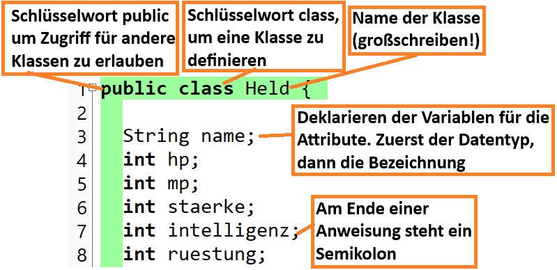 Das Attribut hp der Klasse Held ist vom